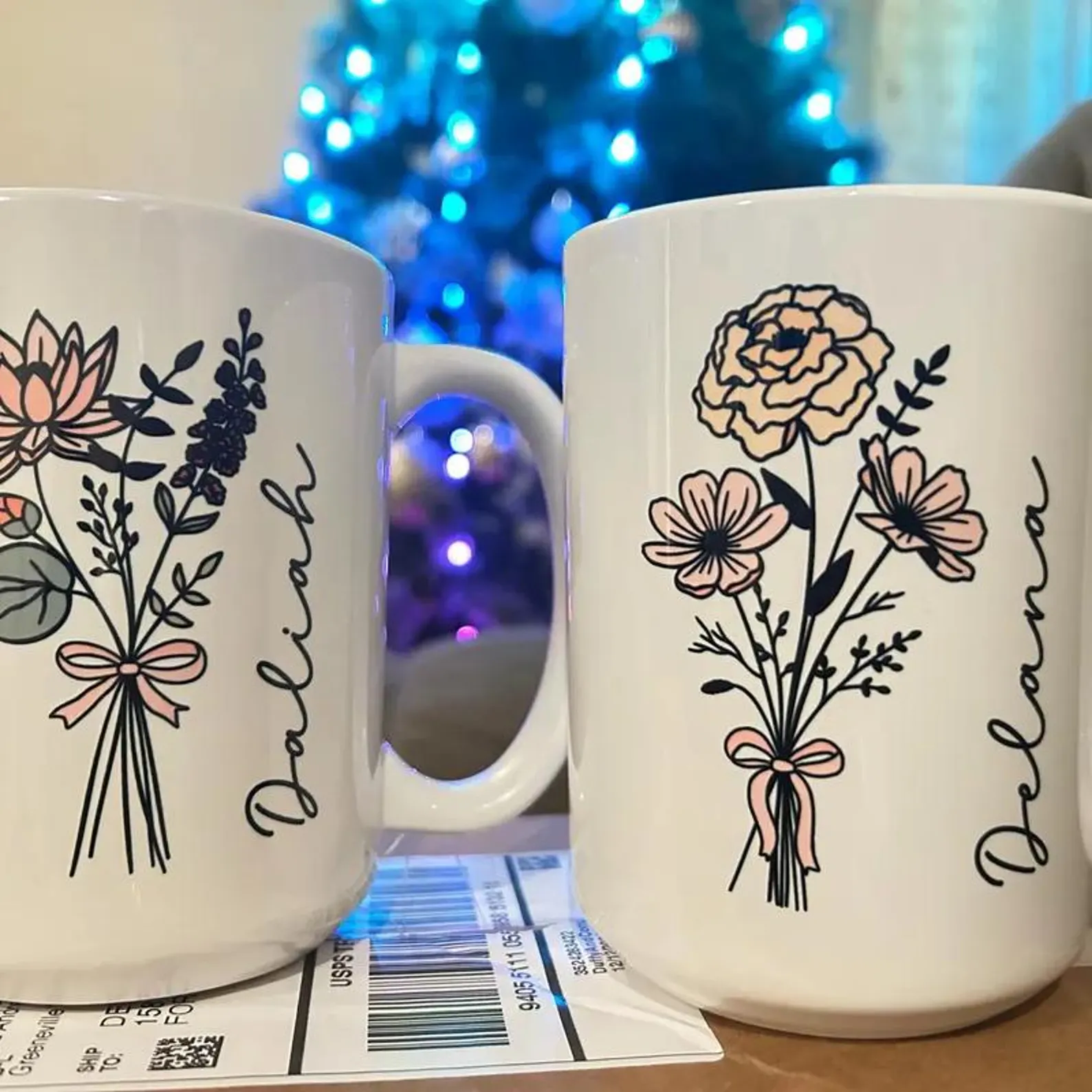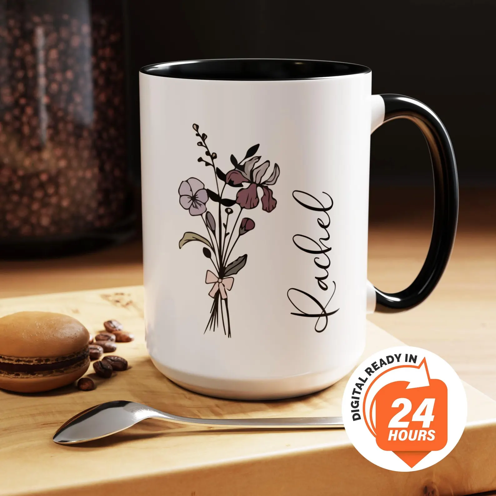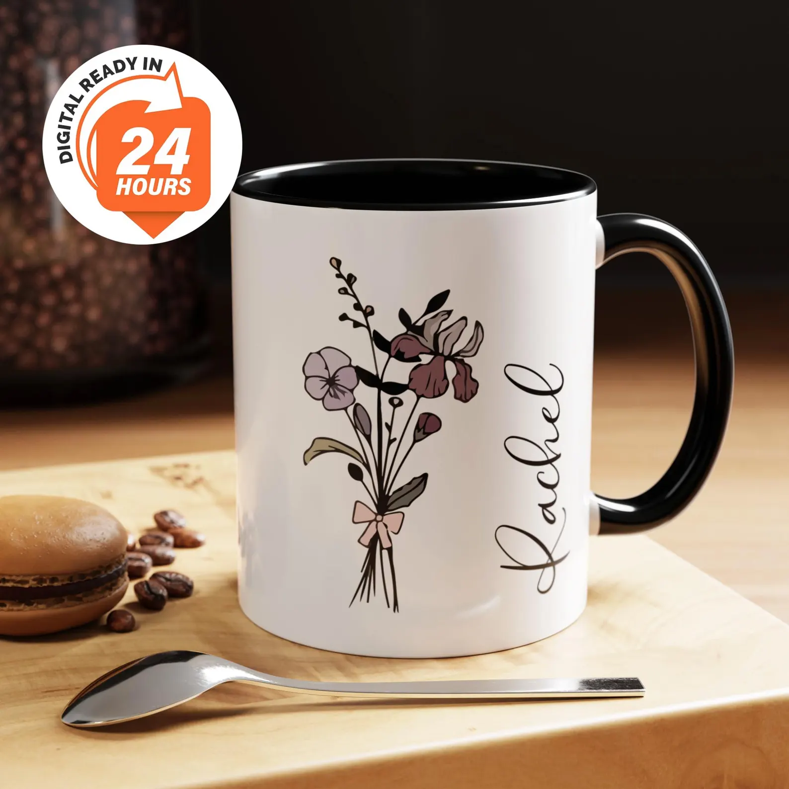 Personalized Coquette Birth Flower Mug, Custom Floral Coffee Mug, Gift For Mom, Gift For Daughter, Best Friend Gift, Gifts Under 15oz & 11oz Mug