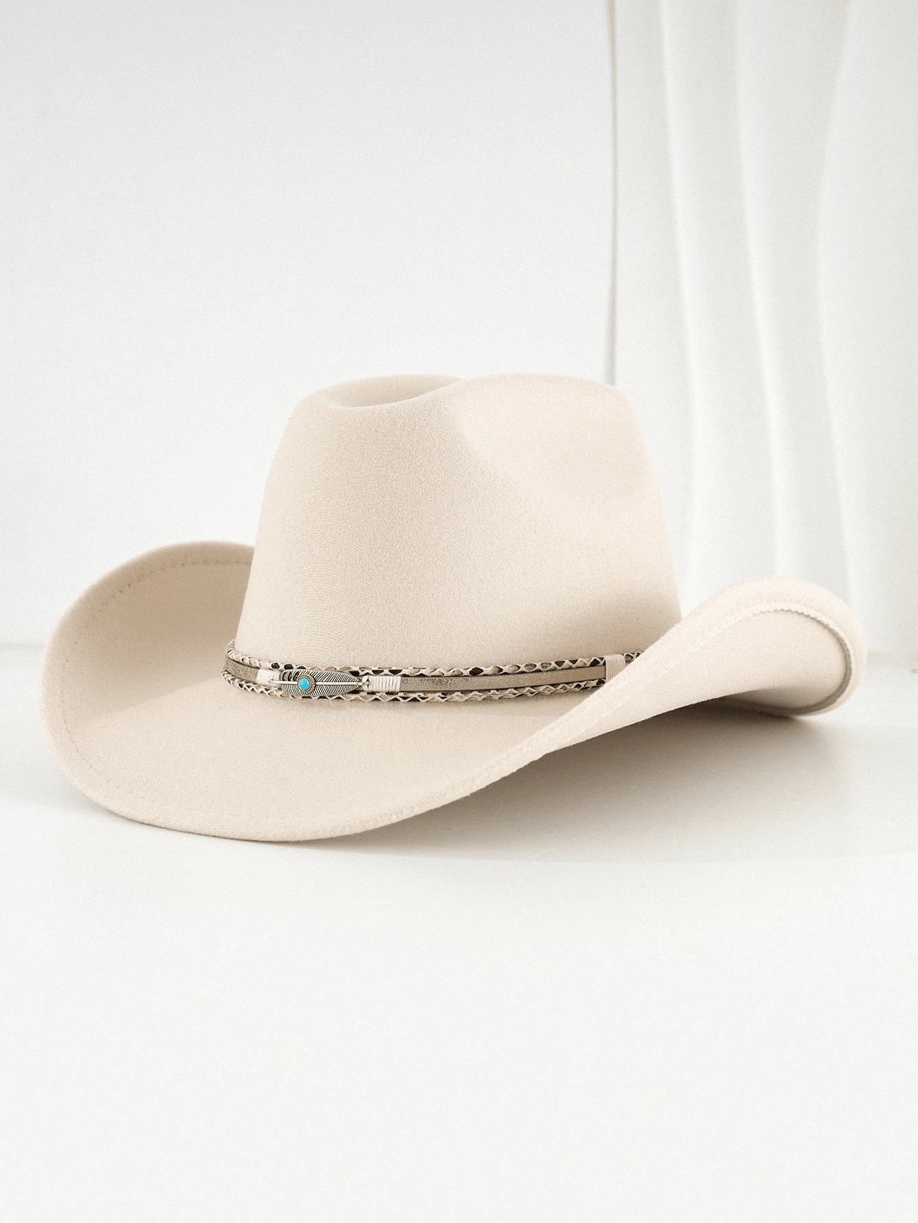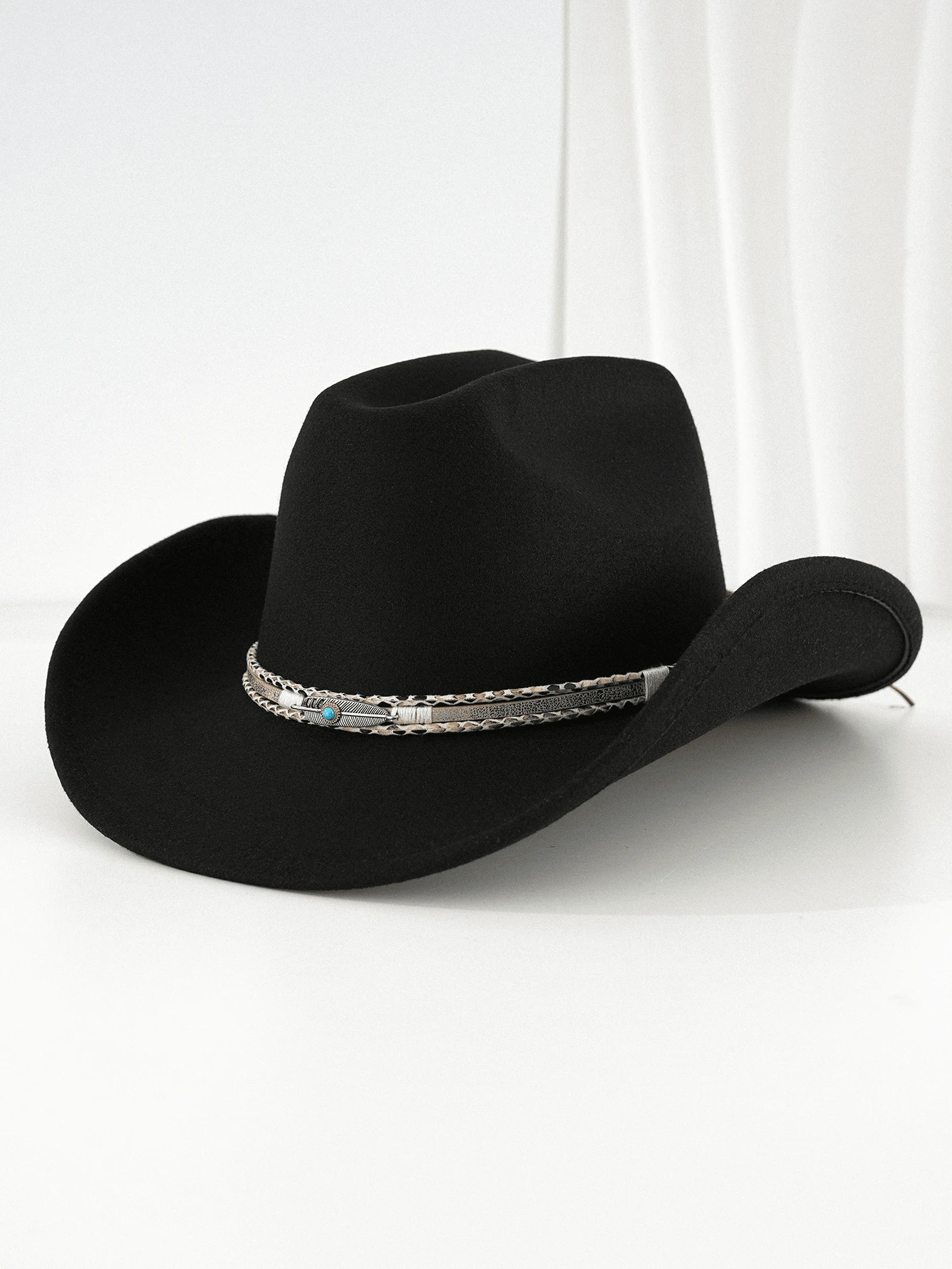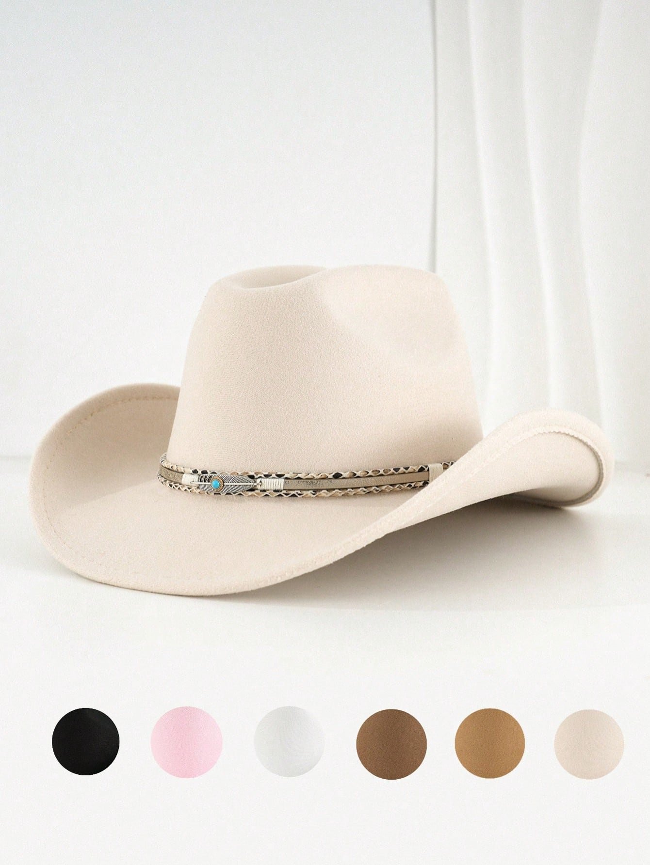 Women's Solid Color Faux Wool Sheriff Badge Cowboy Hat, Sheriff Badge Prop, Detachable Strap, Western Style, Suitable For Music Festivals, Western Themed Events, Retro Parties, Role-Playing, Costume Nights, Holiday Dances, Bachelor Parties, Birthday Celeb