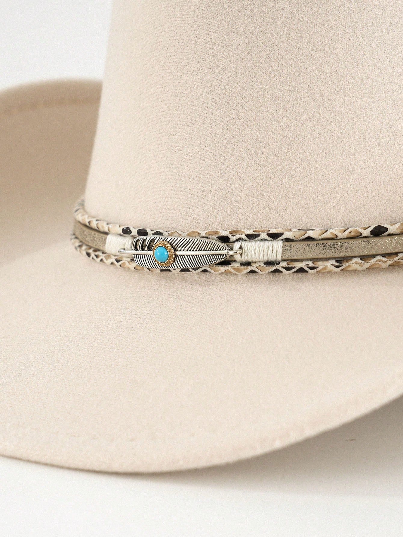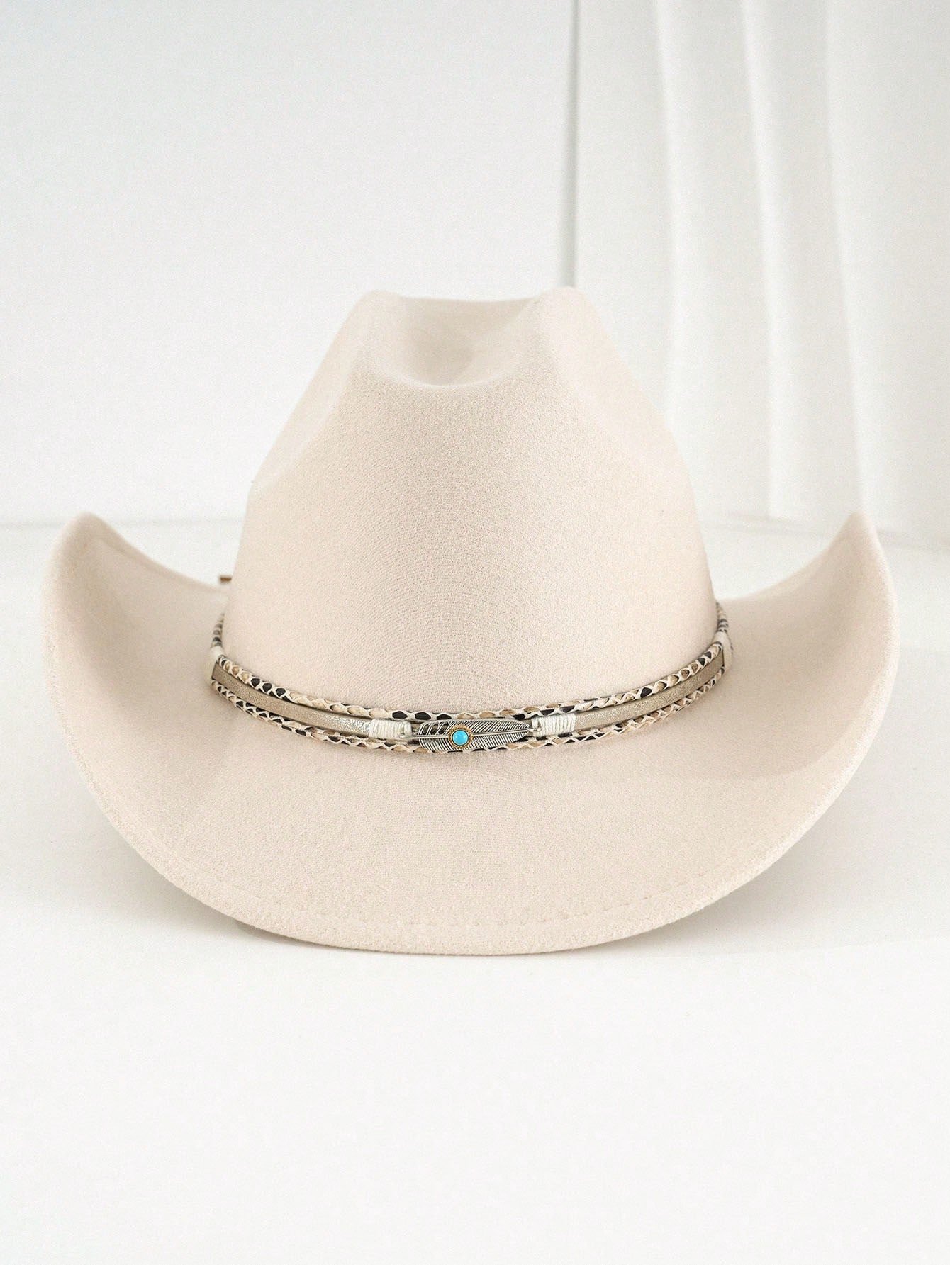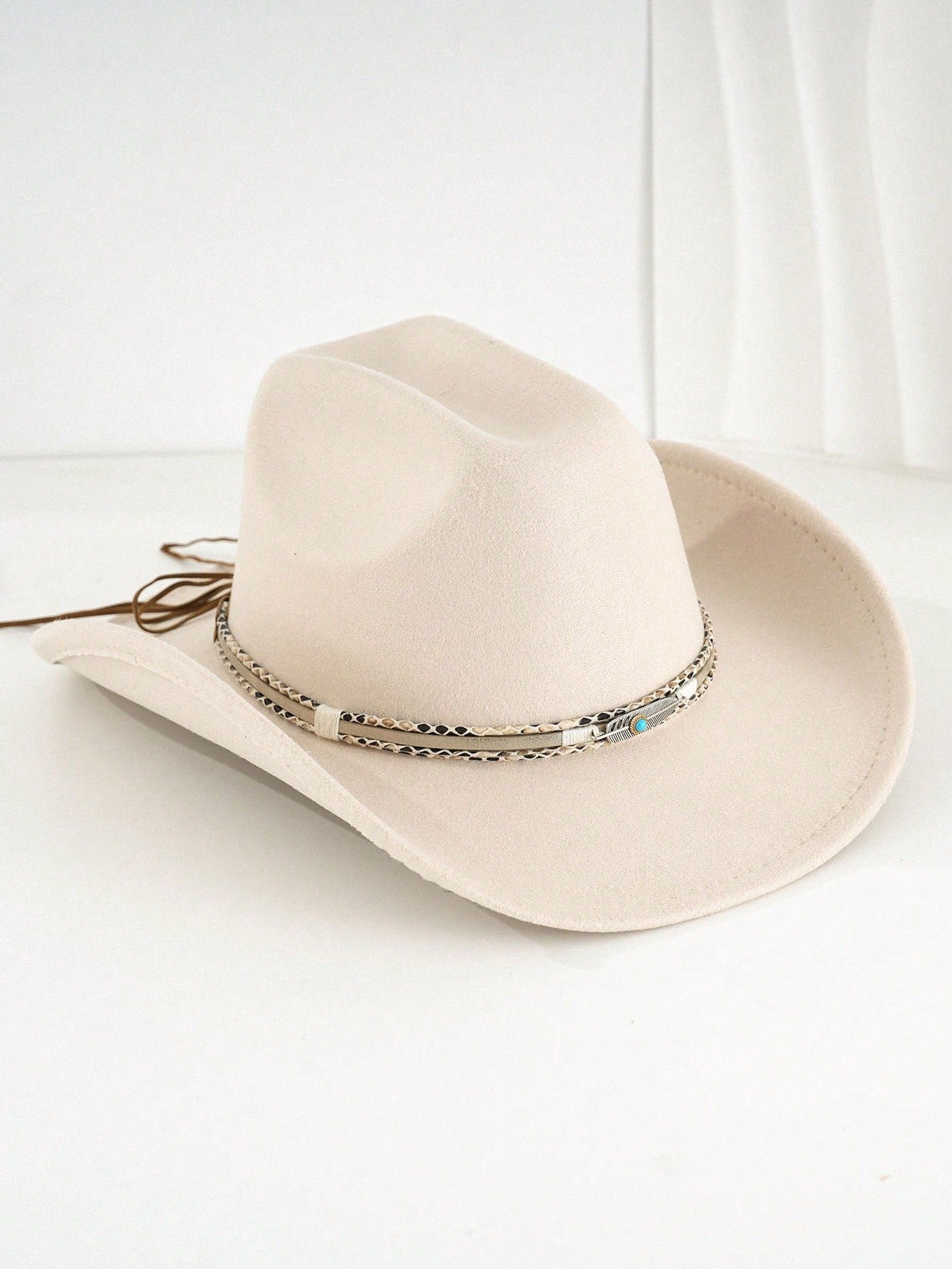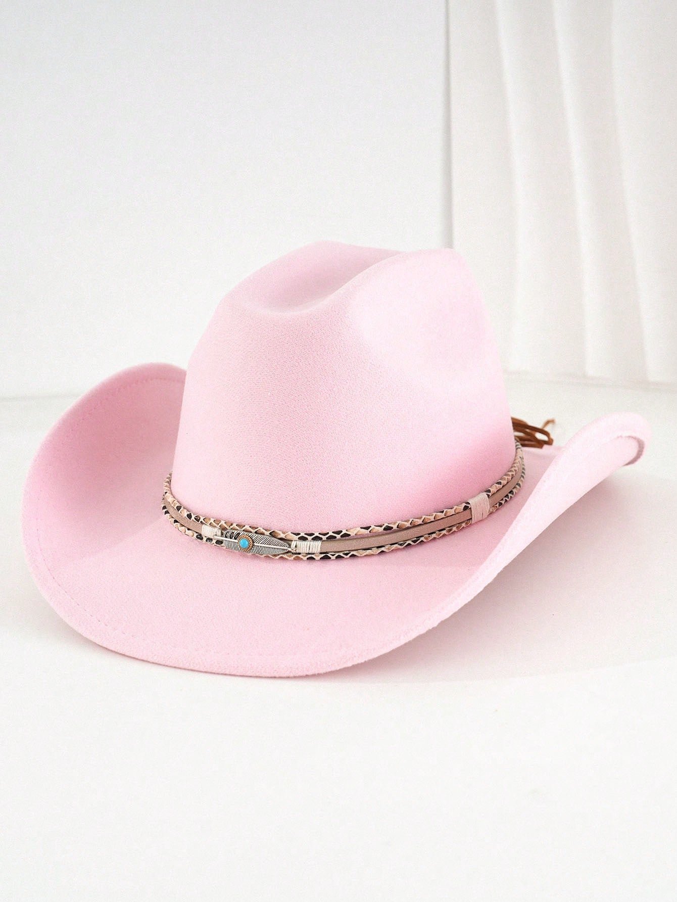 Women Retro American Style Cowprint Faux Leather Decor Cowgirl Hat, Jazz Cap Suitable For Western Cowboy Style, Suitable For Daily Wear, Outdoor, All Season
