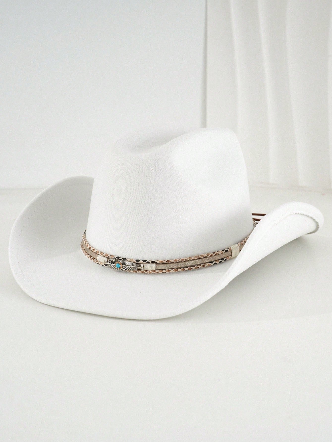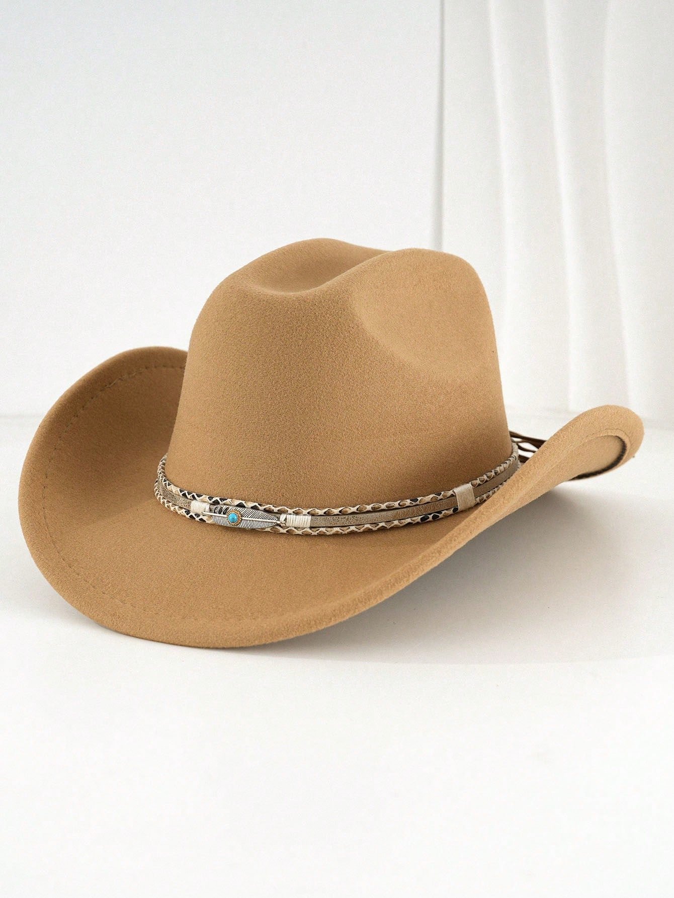 Unisex Western Cowboy Hat, Hand Woven Feather Hat Chain, Suitable For Outdoor Riding, Hiking, Driving, Party, Cowboy Style Accessories.