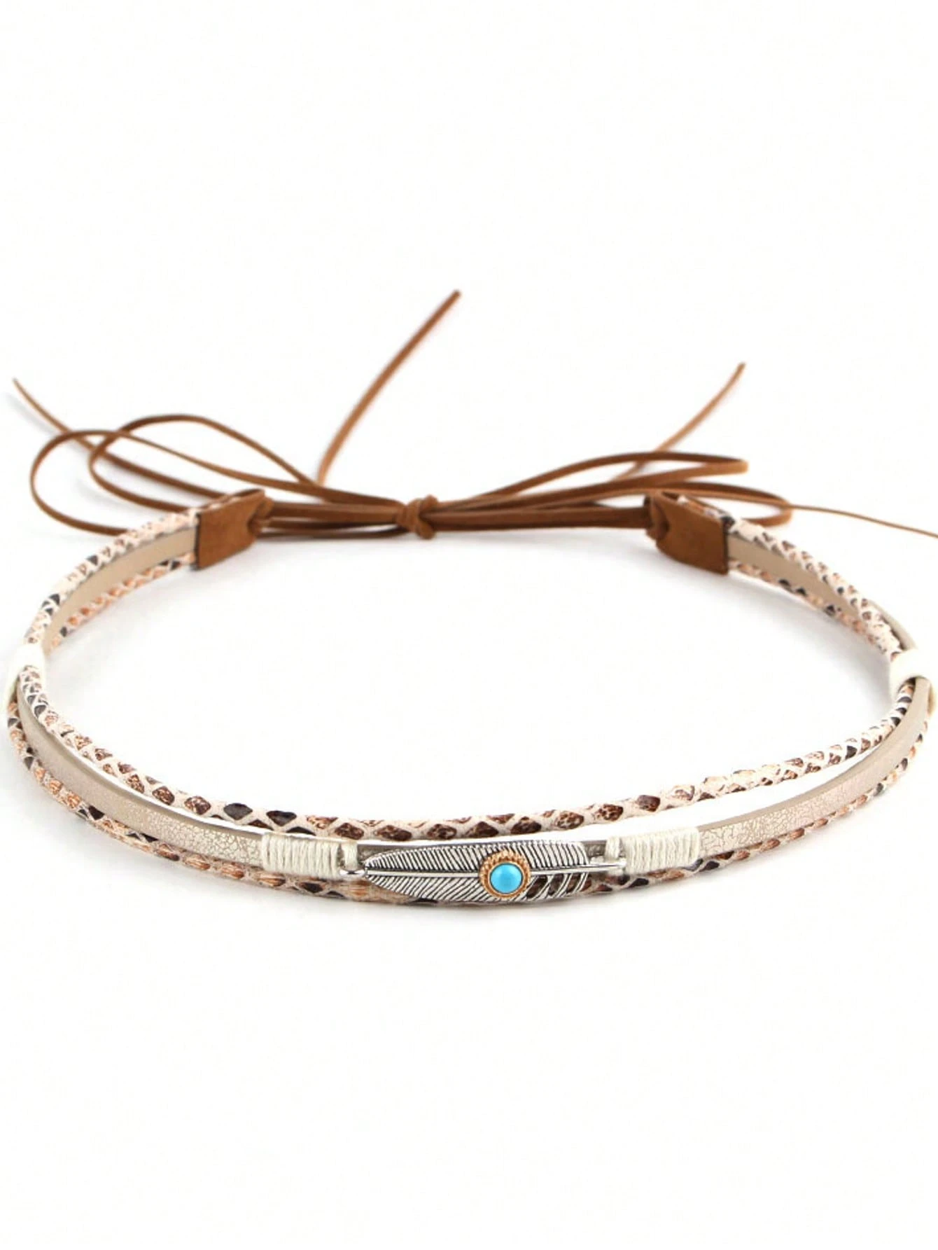 Beige Black Camel Pink White Silver Feather Gemstone Decorative Belt |