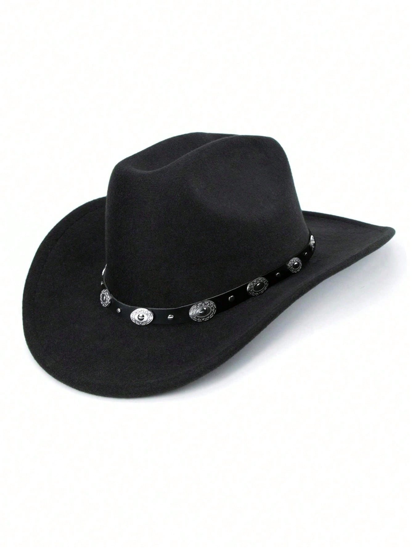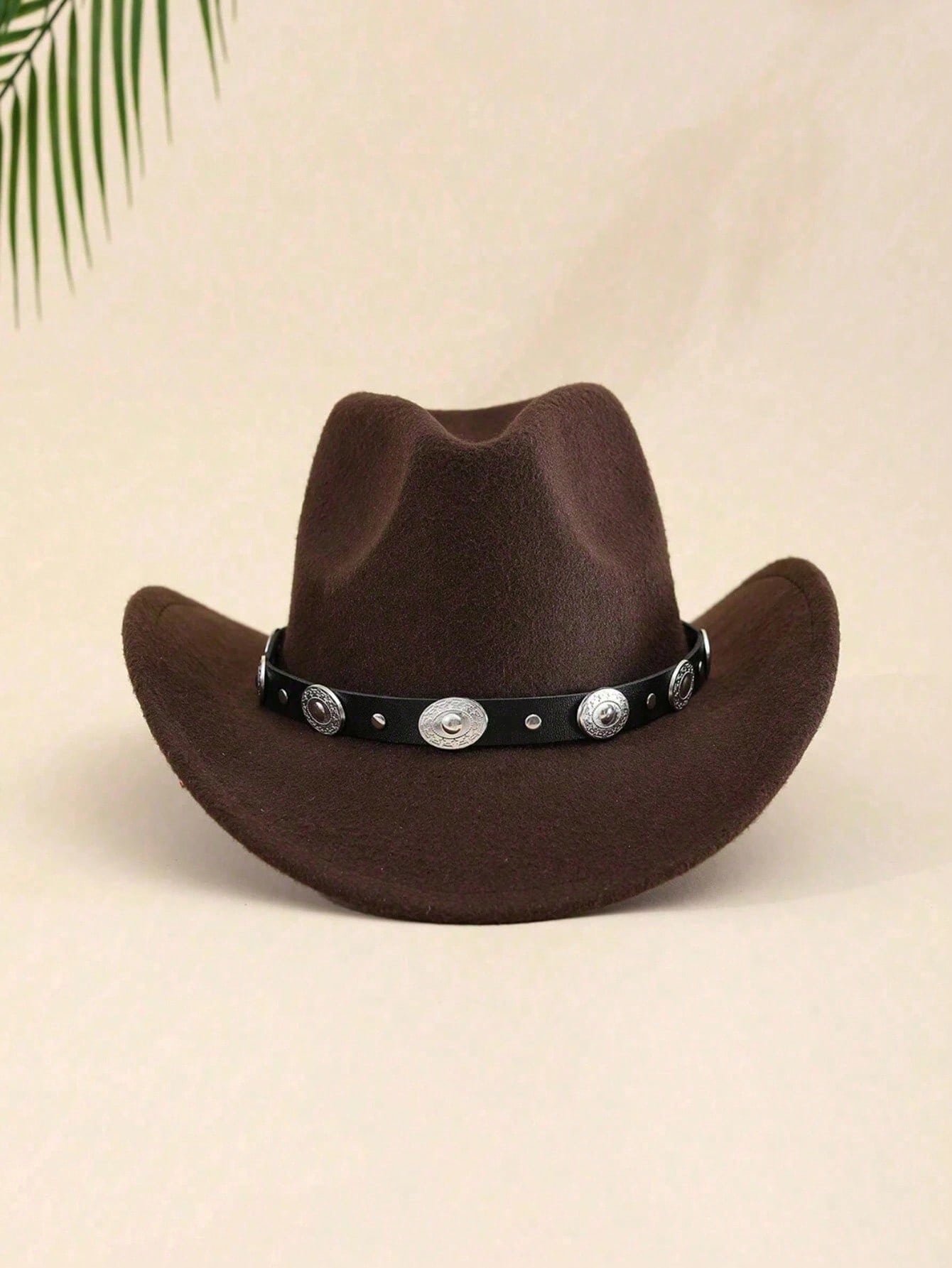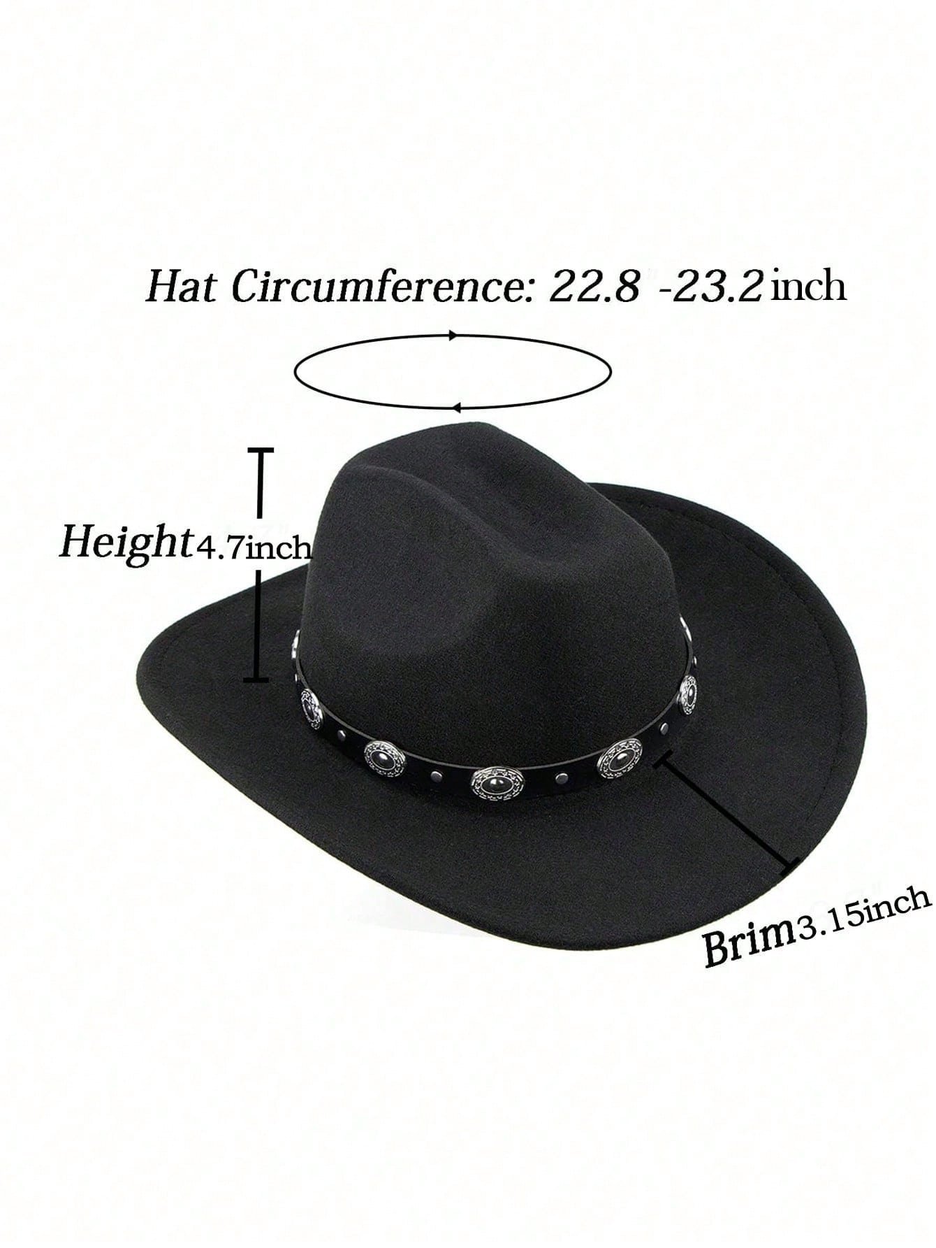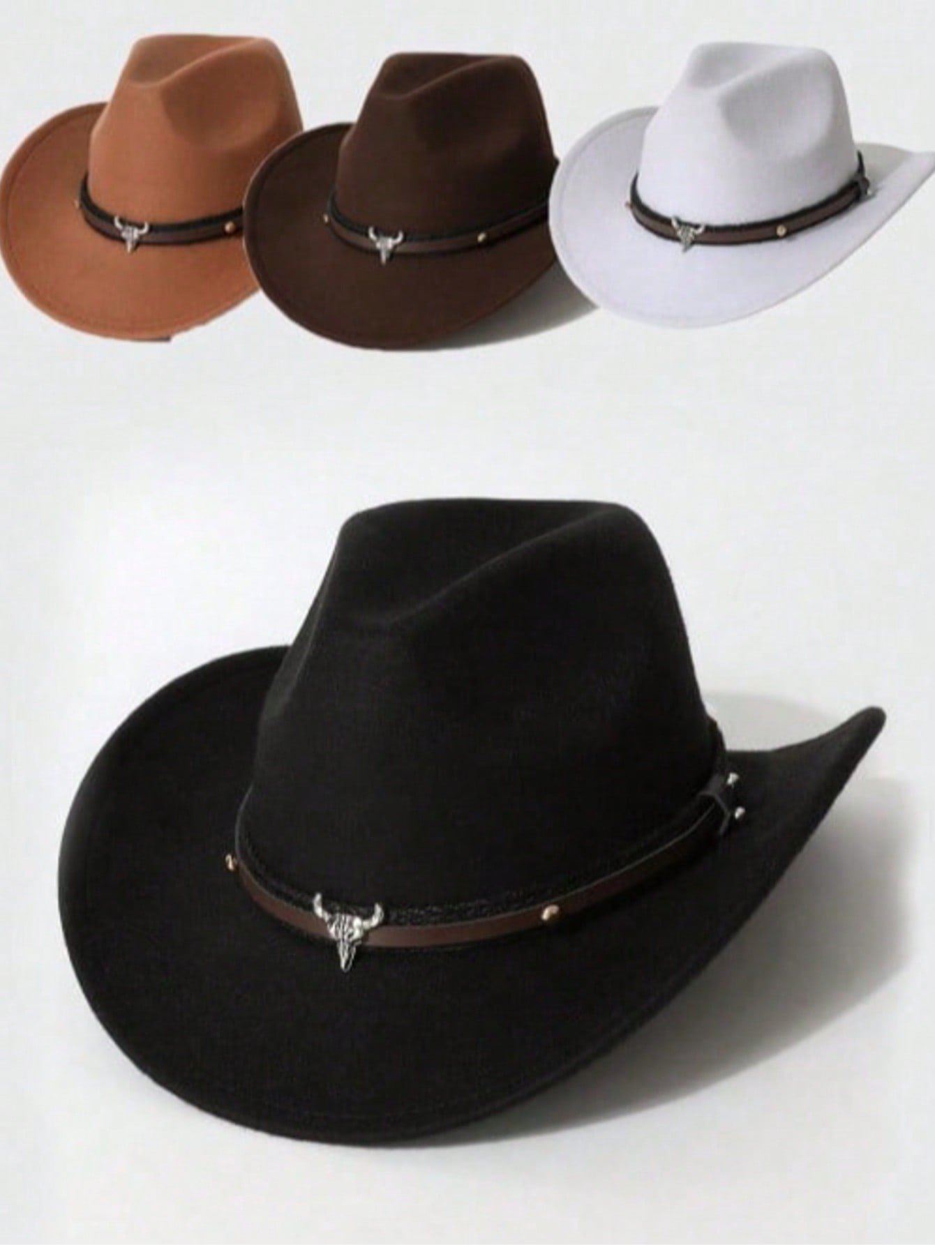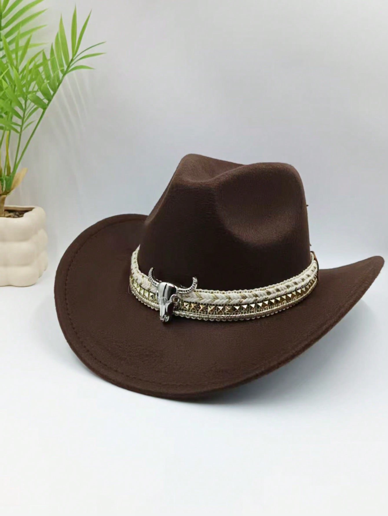 Rural And Western Cowboy Girl Hat, Cowboy Hat, Adjustable Retro Brass Bull Head Decoration, Suitable For Daily Casual Wear, Western Cowboy Party