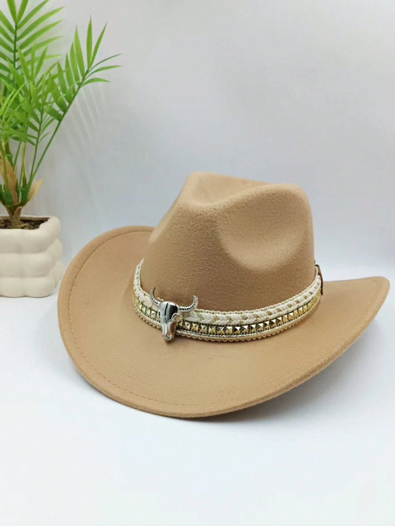 Women's Solid Color Faux Wool Sheriff Badge Cowboy Hat, Sheriff Badge Prop, Detachable Strap, Western Style, Suitable For Music Festivals, Western Themed Events, Retro Parties, Role-Playing, Costume Nights, Holiday Dances, Bachelor Parties, Birthday Celeb