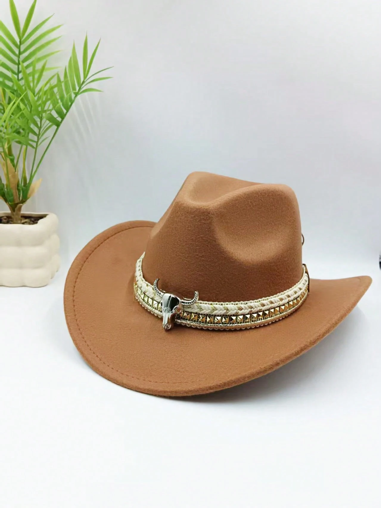 Bohemian Bull Retro Pattern Casual Rivet Decorated Hat, Suitable For Western, Beach, Sun Protection, Unisex All-Match Commuter, All Season