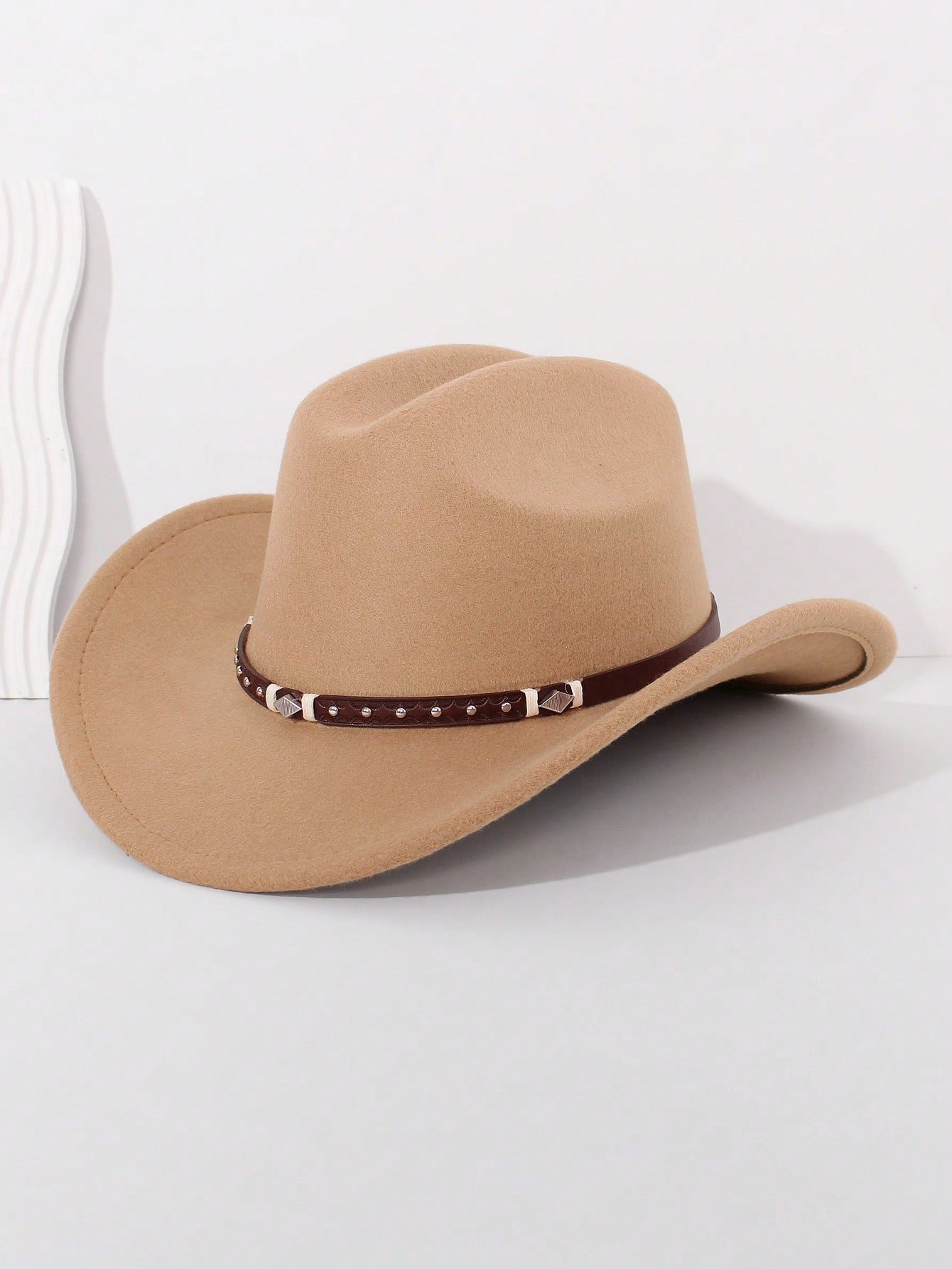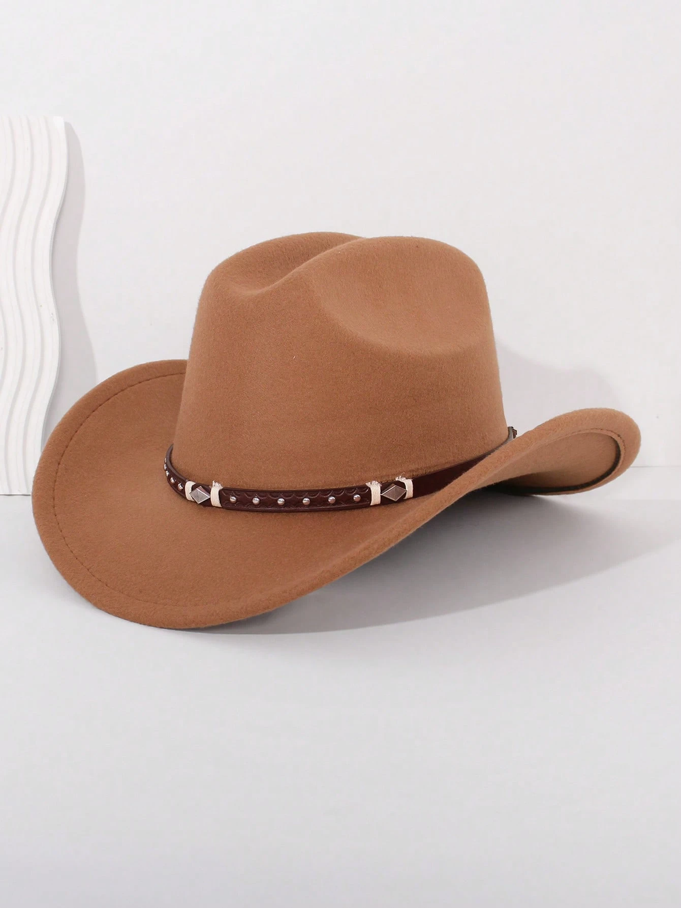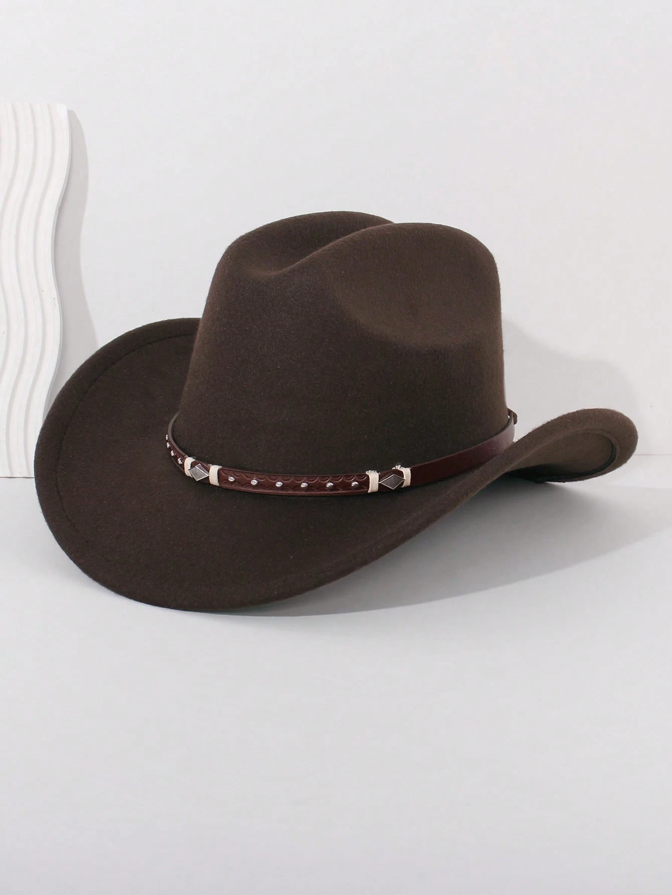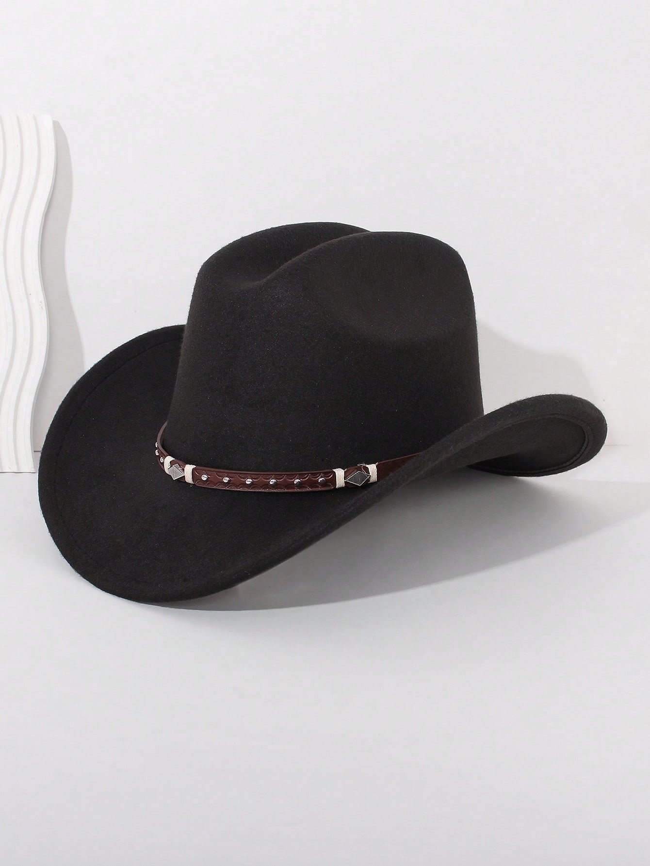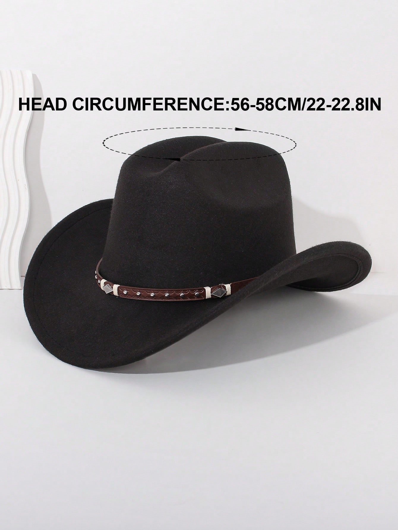 Women& Polyester Western Cowboy Hat, Unisex Vintage Style Hat, Silver Round Shape Decoration, Suitable For Daily Casual Wear, Western Cowboy Party, Cowboy Hat One Size Fits All