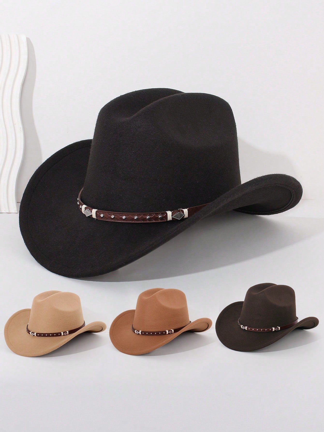 Western Cowboy Hat For Men Women Felt Fedora Cowgirl Cowboy Hat With Belt Buckle