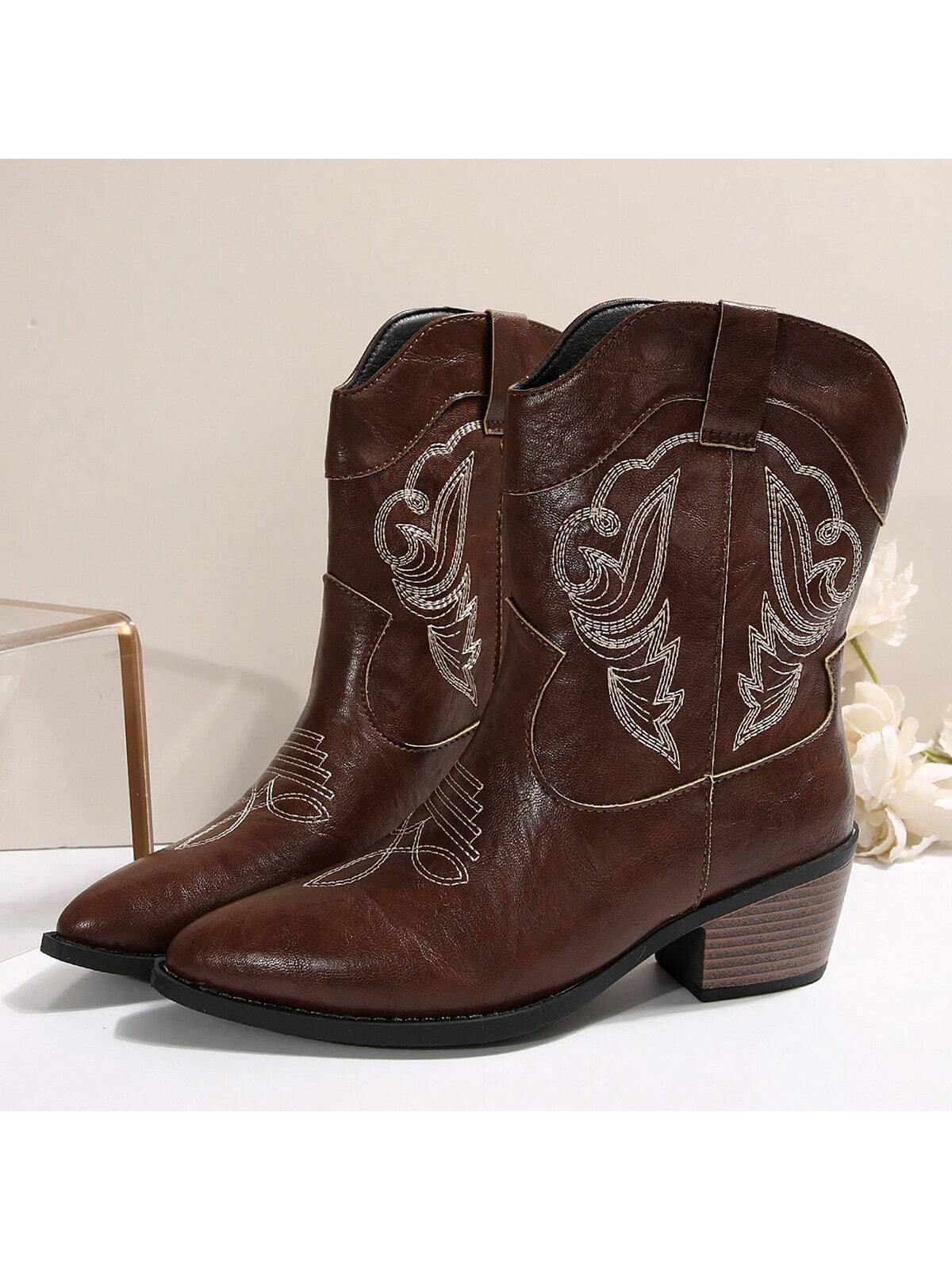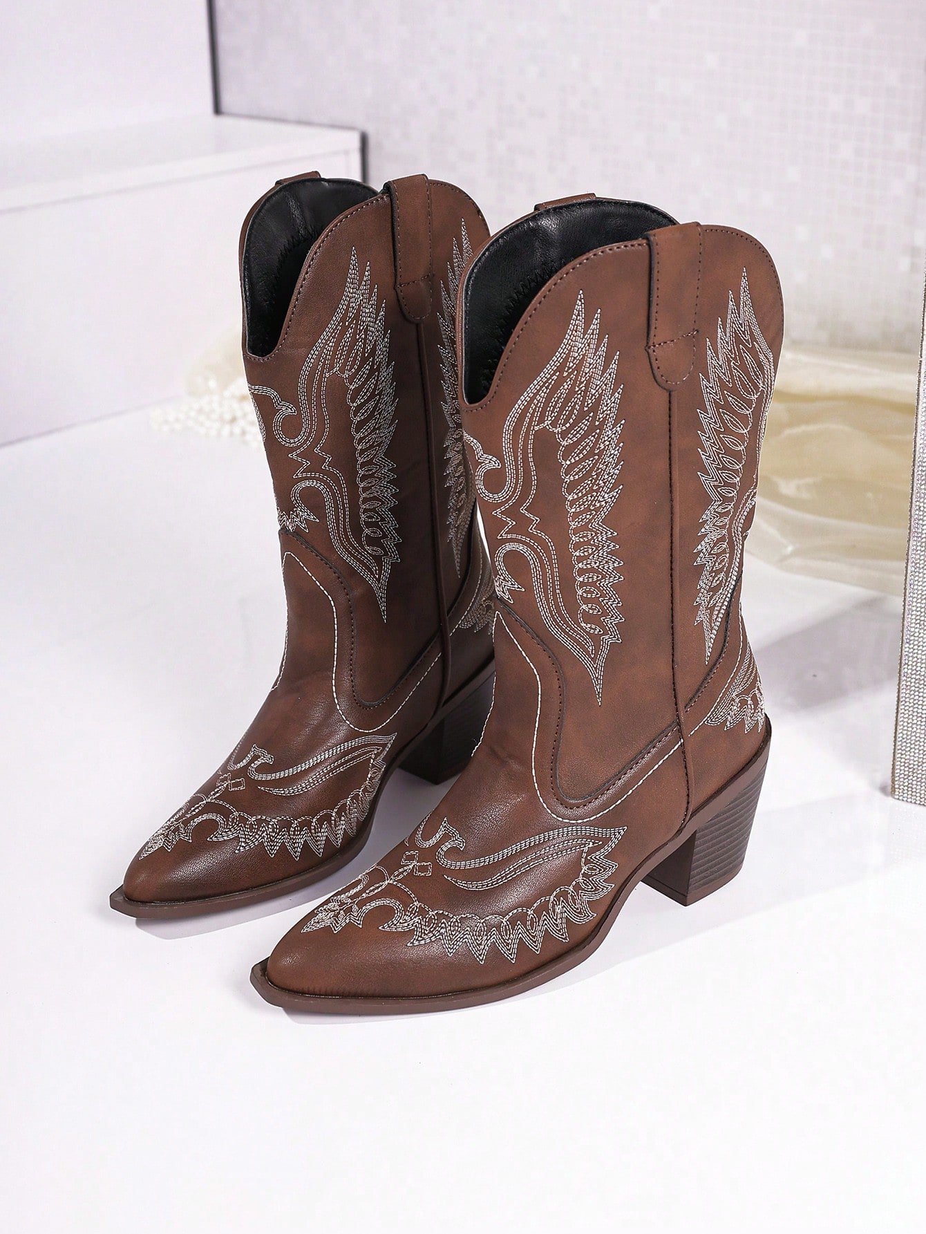 Women Vintage Western Boots With Embroidery, Fashionable For Outerwear Cowboy Boots